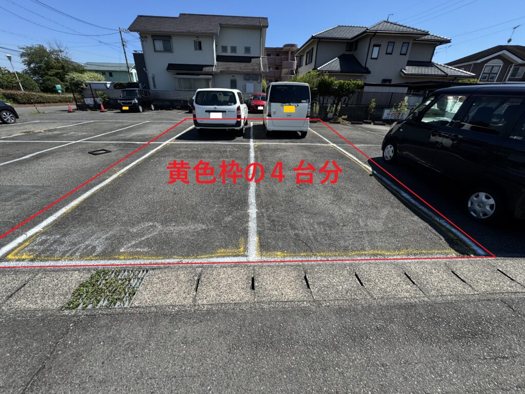 ※黄色線で枠があるところ、4台分が駐車場になります